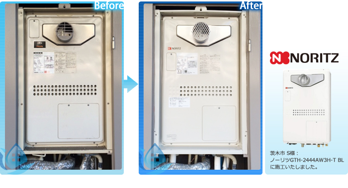施工事例1 S様 茨木市 ノーリツGTH-2444AW3H-T BL