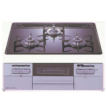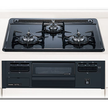 ・水無し片面焼 ・ブラックホーロートップ ・ブラックフェイス ・左右強力バーナー |
