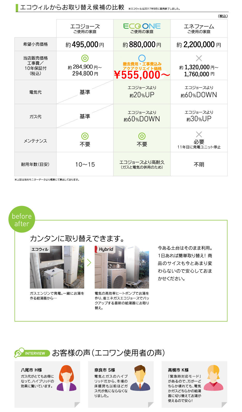 エコワン特価 エコウィルからの取り換えにも最適。→お問合せはこちらをクリック←