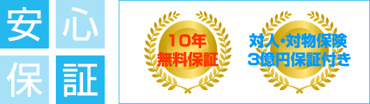 - 最対人、対物保険加入済み、施工後も安心してご利用下さい。